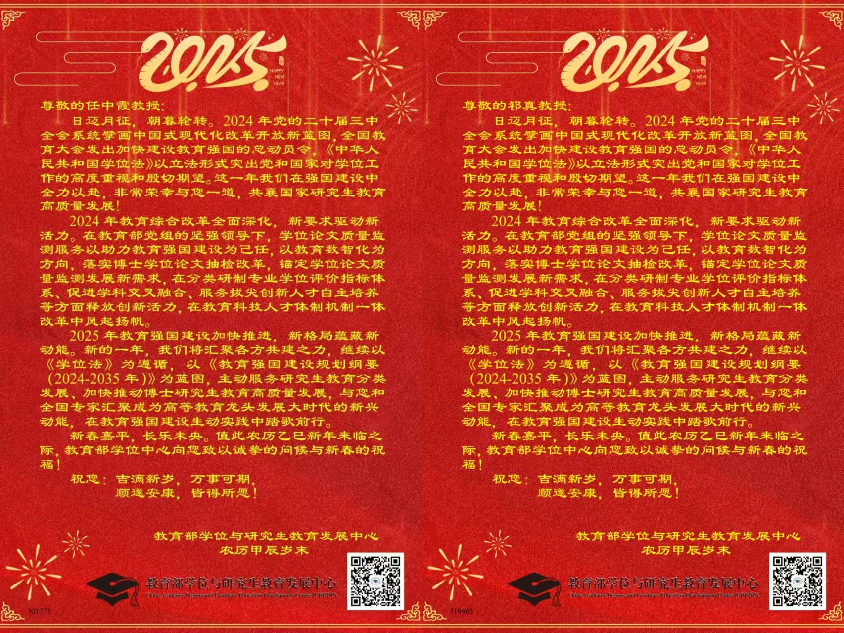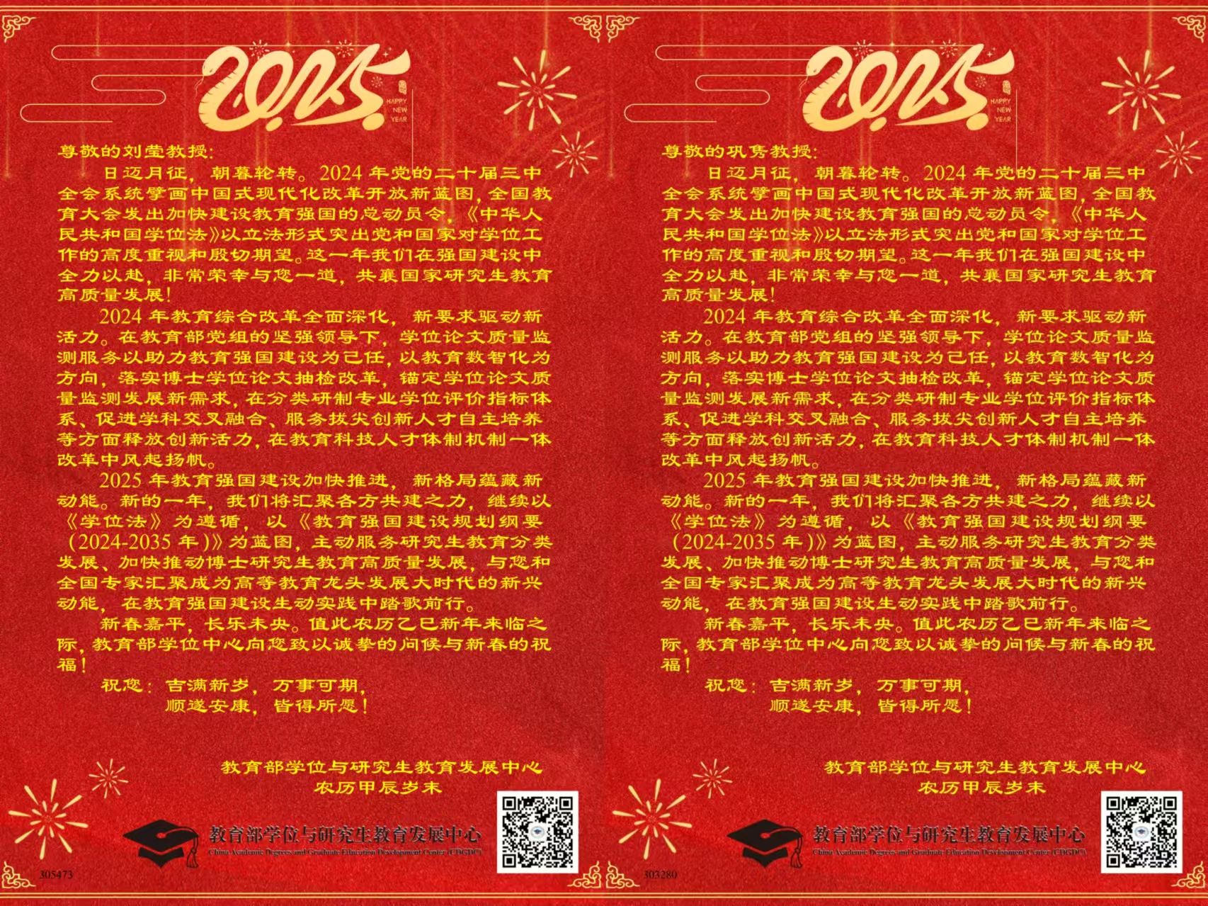 近日,太阳集团多名教师荣幸收到教育部学位和研究生教育发展中心发来的新年贺信,对一年来在毕业论文指导及抽检盲审方面的工作给予充分肯定和高度认可。