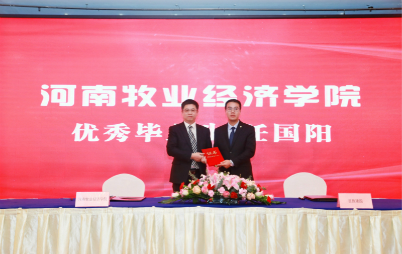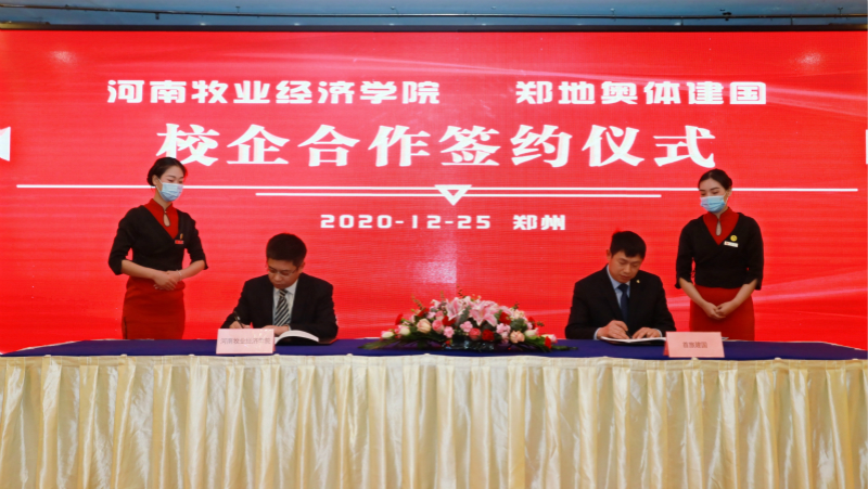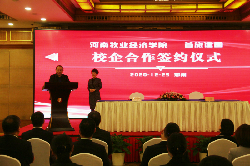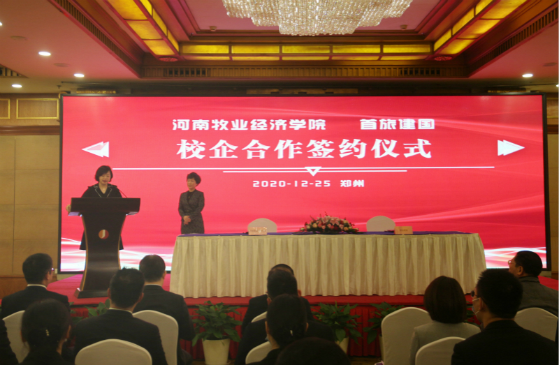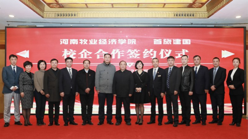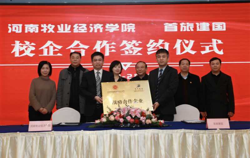 为进一步促进产教融合,拓宽科学研究、成果转化及人才培养渠道,12月25日上午,我校与北京首旅建国酒店管理公司在郑州建国饭店隆重举行了校企合作签约仪式。副校长张卫宪、社会服务办公室主任胡迎利,北京首旅建国酒店管理公司副总经理于阗、人力资源总经理袁玮,郑州建国饭店总经理潘振家、人力资源总监王芳,太阳集团党委书记李喜民、院长王德静、酒店管理教研室主任张少飞出席了签约仪式,河南区建国品牌各成员酒店总经理及管理团队参加,仪式由河南郑地奥体建国饭店总经理黄宁主持。